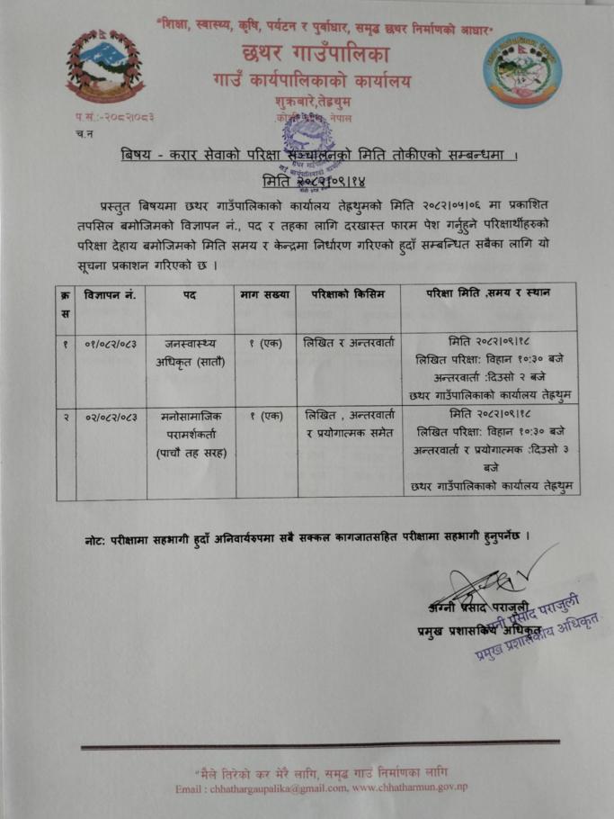 » करार सेवाको परिक्षा मिति तोकिएको सम्बन्धमा |