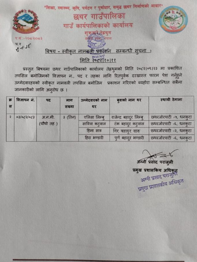 छथर गाउँपालिकाको विनियोजन ऐन २०८१