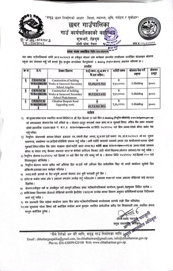 सार्वजनिक खरिद/बोलपत्र सूचना