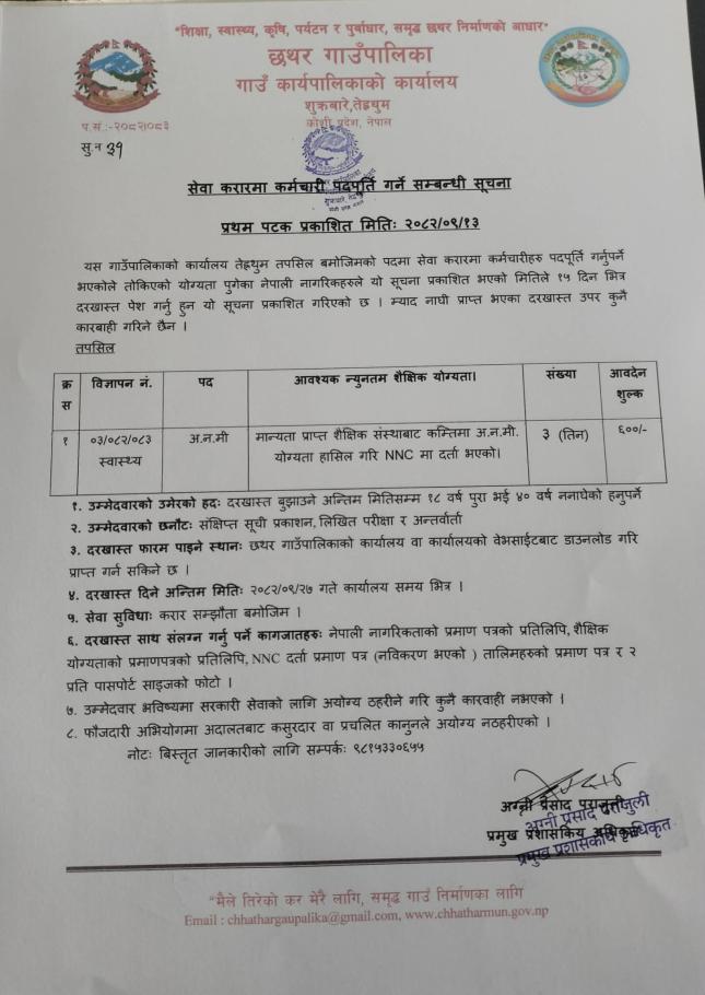 सेवा करारमा कर्मचारी पदपुर्ति गर्ने सम्बन्धि सूचना |