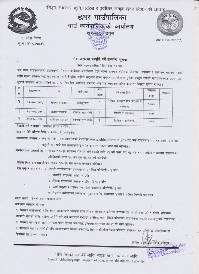 सेवा करारमा पदपुर्ति गर्ने सम्बन्धी सूचना राेजगार शाखा